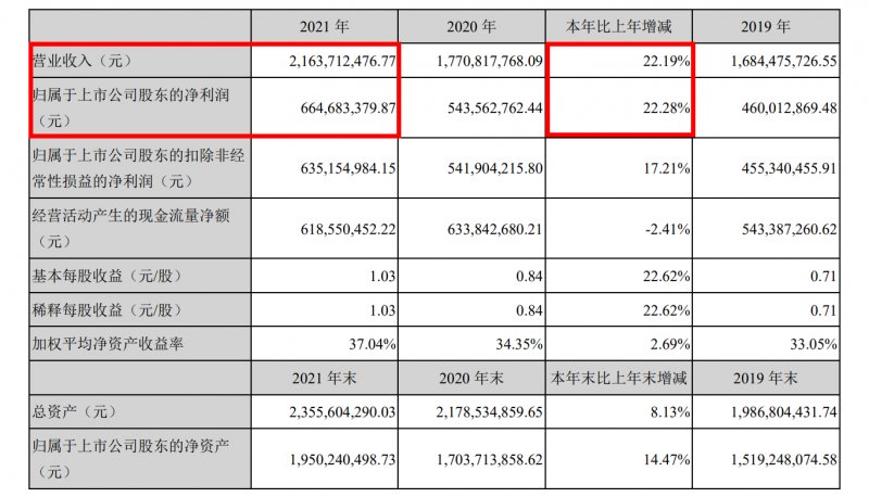 4月8日,浙江美大实业股份有限公司(以下简称“浙江美大”)发布了2021年年度报告。报告显示,2021年浙江美大实现营业收入21.64亿元,同比增长22.19%;归属于上市公司股东的净利润6.65亿元,同比增长22.28%。