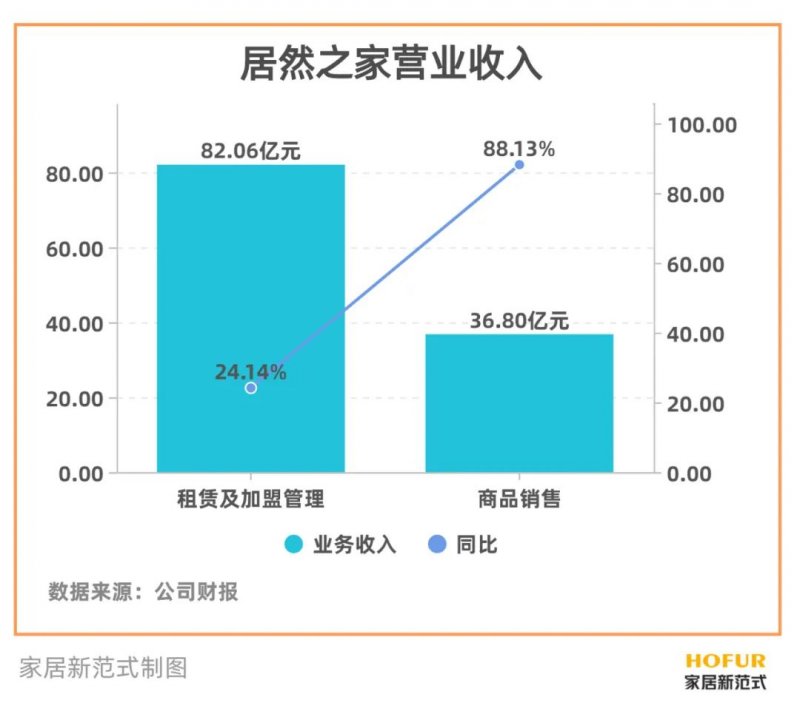 从商业模式来看,与同行红星美凯龙一样,居然之家的主要商业模式也是“自主运营家居卖场+委托管理加盟”。解码财报,家居卖场租赁和加盟收入还是占到它营收的大头。